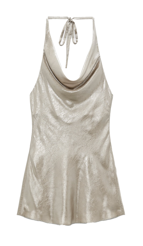 Dressing up for when the weather is colder does not mean we need to completely cover up, we can still go out in our dazzling dresses. This metallic draped dress from Zara matches the going out memo for this season, with the iridescent silver colour reflecting the sparkling theme. The cowl neckline also adds an elegant touch and fits the luxurious design alongside the material.