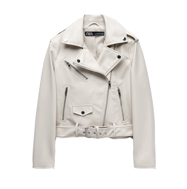 A leather jacket is an essential which will re-emerge each year time and time again. This faux jacket from Zara can be dressed up or dressed down with the metal detailing giving it an upmarket look. As well, the ecru cream colour is the perfect alternative to the basic black jacket when you want a fresh take on this style.