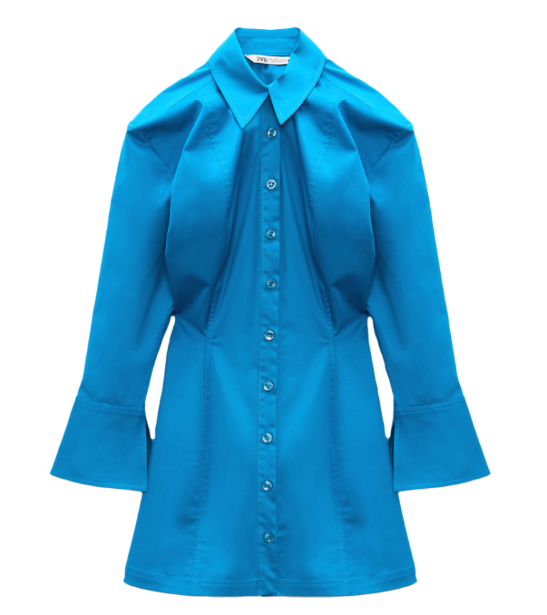 Shirt dresses can be styled in a range of ways, and this is why it can’t be missed out of our closets. Paired with heels and a glam belt for those nights out or layered with a knitted vest and boots for a daytime look. This blue Zara shirt with the cuffed long sleeves and the pleated front detailing makes the dress extremely flattering and not something you would expect from the high-street! It would go perfectly with a cream coloured sweater vest or worn alone.