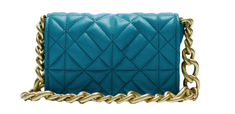 The shoulder bag has been a must-have accessory the past year and this electric blue coloured one adds a bold spin on it. Colour clashing is a trend we have seen this year as well, so this bag would be the perfect accessory to follow this style, paired with a blue shirt dress such as the one above. The thick chain shoulder strap and quilted exterior also creates a sophisticated touch.