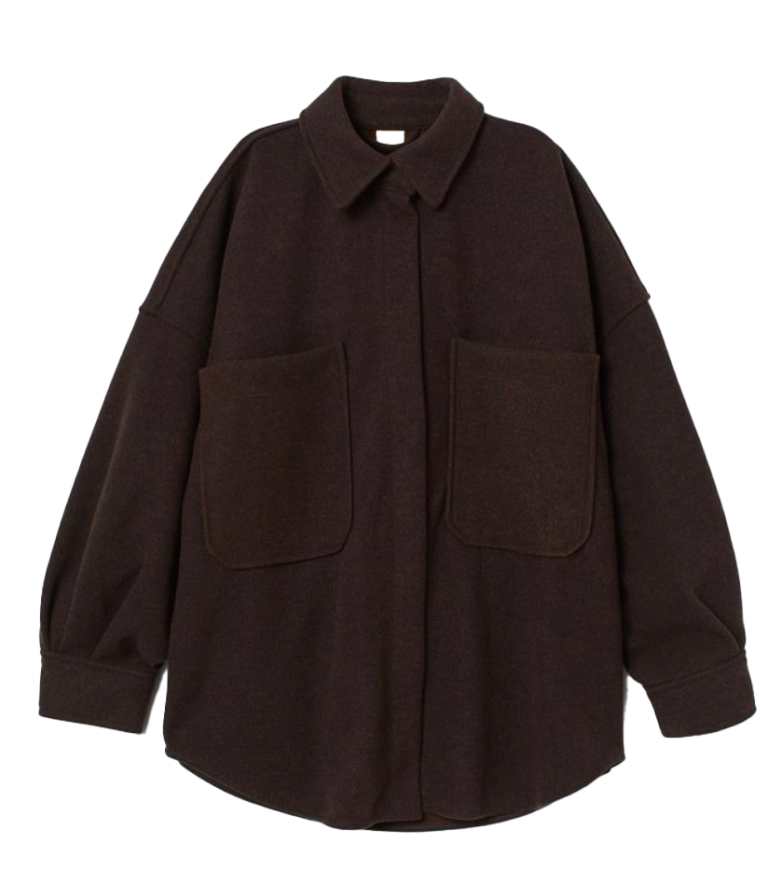 The shacket is a garment we have seen flooding our social media feeds and this brown one from H&M is one that keeps appearing. Seen styled above oversized with boots and a crossbody bag, the felted material is casual but styled with the right accessories it can be dressed smartly. The low dropped shoulders and large open chest pockets makes it trendy as well as a practical jacket to keep you cosy. The brown colour also makes the perfect neutral colour to pair with anything.