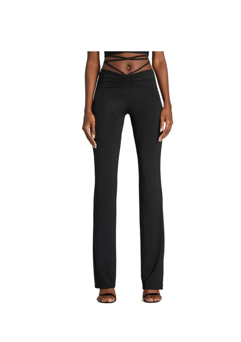 This trend sees its wearers walk the fine line quite literally. Midriff flossing sees skirts, trousers, and dresses use tie fastenings that wrap around the waist (usually bare) and highlight the stomach area. Like visible thongs, the risqué trend of midriff flossing dates back to the early noughties but has seen a resurgence through the likes of Charlotte Knowles and Michael Kors. Famous faces closer to home have also picked up on the trend, including Dua Lipa and Bella Hadid, who pairs her midriff flossing with a crop top and a stylish blazer.