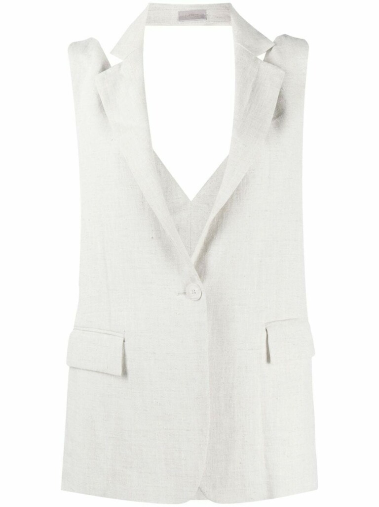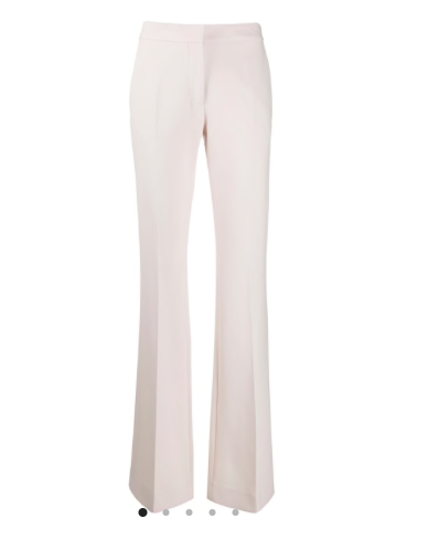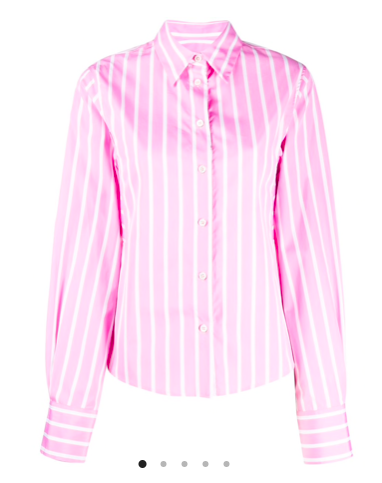 Preppy and tailored but never boring, this chic ensemble of creamy tailored trousers, a fitted waist coat and a bubble gum pink pinstripe shirt with a loosely undone black oversized school tie. This look is an ode to Carrie’s character; sophisticated, yet fun.
