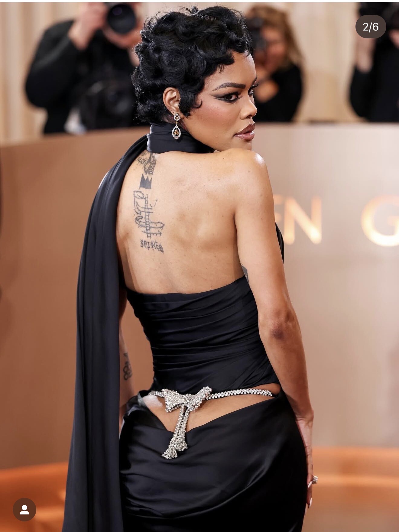 Taylor went for couture with a plot twist. In custom Schiaparelli Haute Couture, the gown sculpted the body with strategic draping and cutouts. Then delivered the headline detail: a crystal “whale tail” moment at the back (yes, that kind of whale tail), executed as jewelry-level sparkle rather than pure provocation. Several write-ups framed it as an “expensive” take on the cheeky trend. Schiaparelli doing subversion the way Schiaparelli does: surreal, sharp, and engineered.