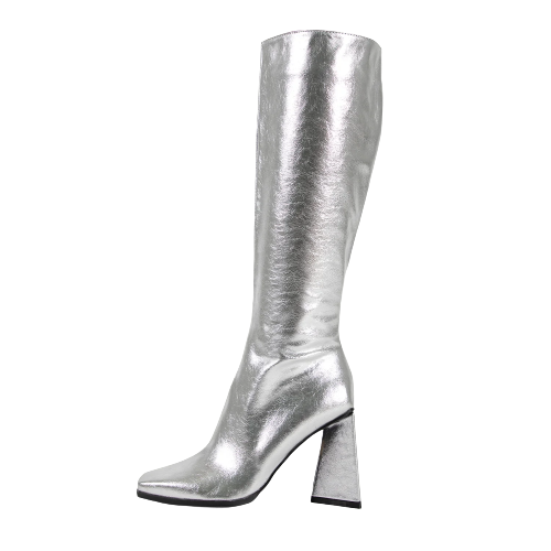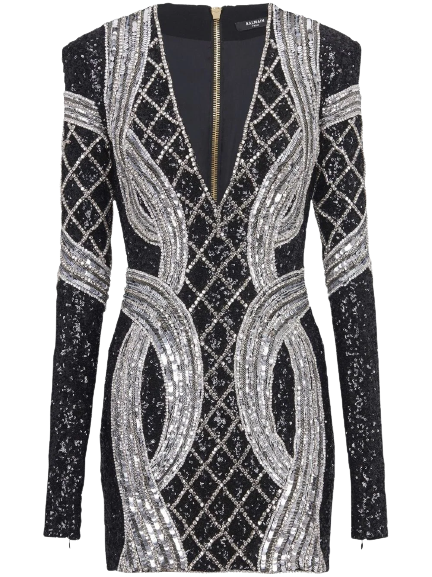 Another custom Balmain look, Beyoncé transformed into a mirror ball in this asymmetric mirrored mini dress. She paired it with silver thigh-high boots and metallic sunglasses.