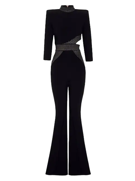 Beyoncé wore another bodysuit, this time a futuristic-silhouette number from Alexander McQueen. It was hand embroidered, mixing different textures like rhinestones, intricate beading and metallic threads, and featured padded shoulders and hips.