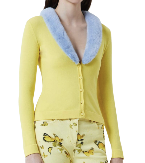 And this time around, Blumarine has something else new fuelling its popularity — social media. The Blumarine look is downright booming with Gen Z on TikTok (with the hashtag #blumarine receiving 1.9 million views on the app), and the label’s recent runway looks have been spotted on Instagram on Kim Kardashian, Chiara Ferragni and Bella Hadid, who donned a yellow fur asymmetrical Blumarine top just days ago.