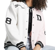 A much more casual look to appreciate now, this pink paradise would be perfect for everyday wear, whether that’s going for a walk around town or meeting up with a friend for coffee. The jacket and joggers are both comfortably casual and the pastel pink colouring adds a lot of fun to them. The white tube top pairs well colour-wise and adds some attitude, whilst the pink heels add just a touch of gravitas to the look without seeming out of place.