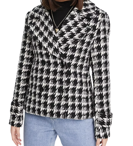An overcoat always looks good and a shining overcoat with a dogtooth pattern looks even better! This statement piece would be sure to make anyone stand out in a crowd and would work wonderfully for both casual and formal getups. Being worn with a pair of basic stonewash denim jeans proves the former case perfectly, with the outfit feeling wonderfully casual with just an added touch of glamour. A perfect look for the spring.