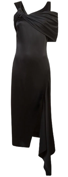 This look calls back to classic outfits vintage Hollywood. The stunning black dress leads into a rare front train which gives the outfit a unique feel and makes It stand out, whilst the sheer opera gloves heighten the glamour and exude a classic aura. The addition of the huge burgundy fur coat adds another layer of glam whilst the slick black shades give the look a modern flavour of cool.