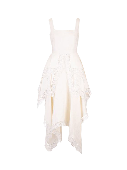 Finally, this ethereal inspired Alexander McQueen’s dress. With a full layered skirt and crocheted hems, the dress is the perfect nod to the trend. Its floaty layers and square neckline embody the fairy-tale style dresses that are growing ever popular this year. Pair with a chunky belt and boots for a more casual style, or simple, strappy heels for a more elegant garden party feel.