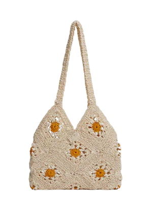 The crochet trend is extending out to accessories, and who doesn’t love a crocheted bag? The perfect summer follow-on from 2020’s fishnet shopper bag, this white daisy crocheted bag from Mango is delicate and perfect for adding a bright Spring/ Summer feel to ensembles.