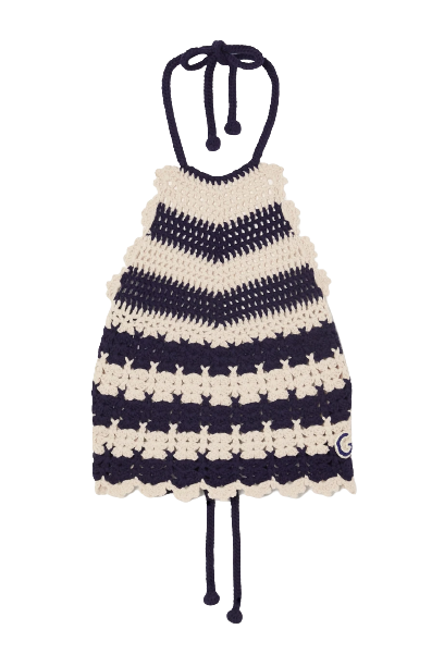 For sailor summer vibes, meet the Gucci striped halter neck. With an open back made for warm days, the sailor-inspired crochet top is perfect for any summer food market shopping or seaside walk. The piece can even be layered up for a chillier evening.