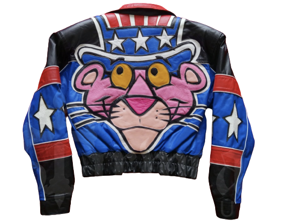 There is no mystery here as to why Mrs Bieber is on our list. What could make a cropped jacket more fun and eye-catching than the most loved cartoon detective? In classic Hailey Bieber style she has her dark shades and gold hoops. Her Pink Panther jacket is vintage 90s motorcycle-stye, from vintage specialists Starwear Status.