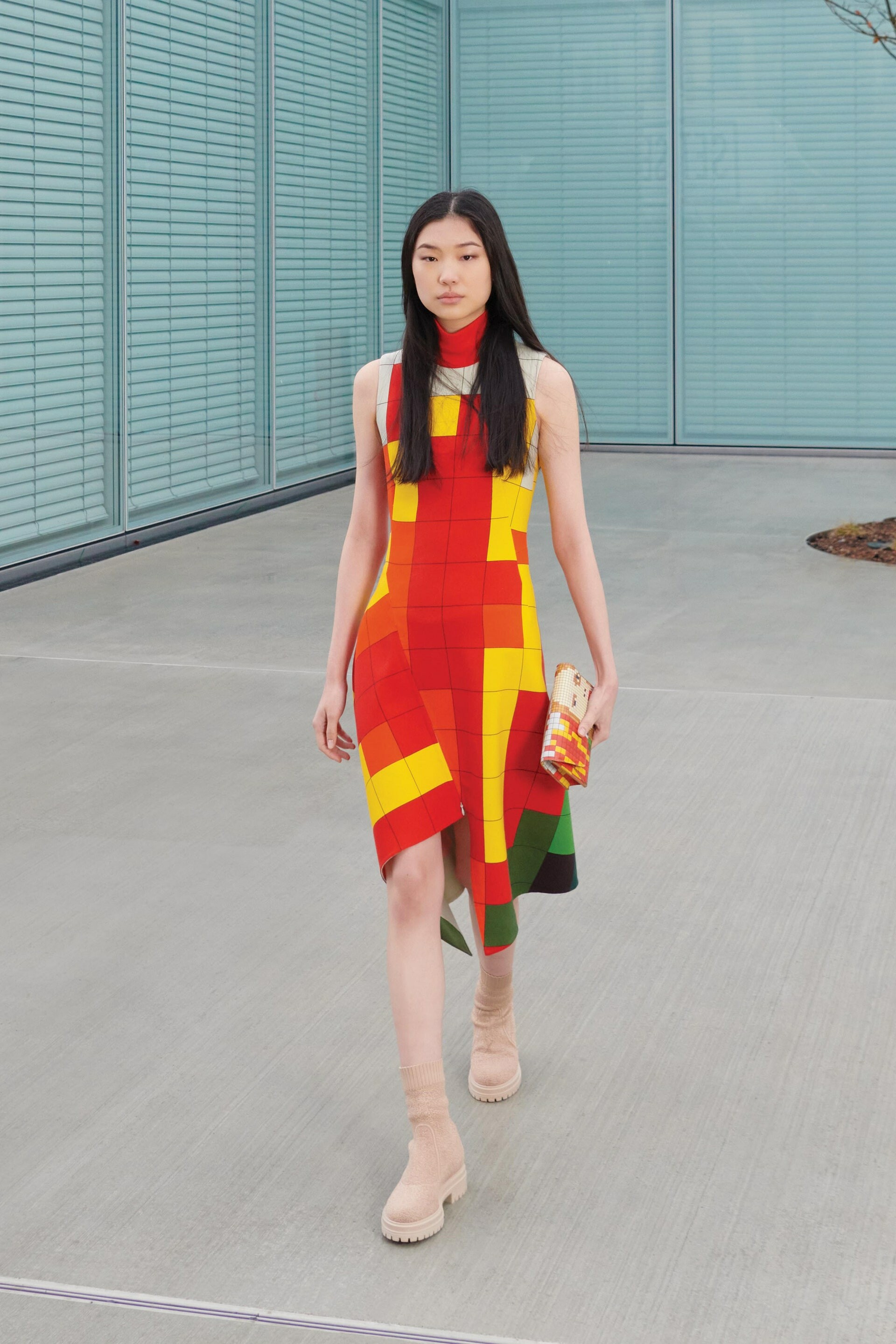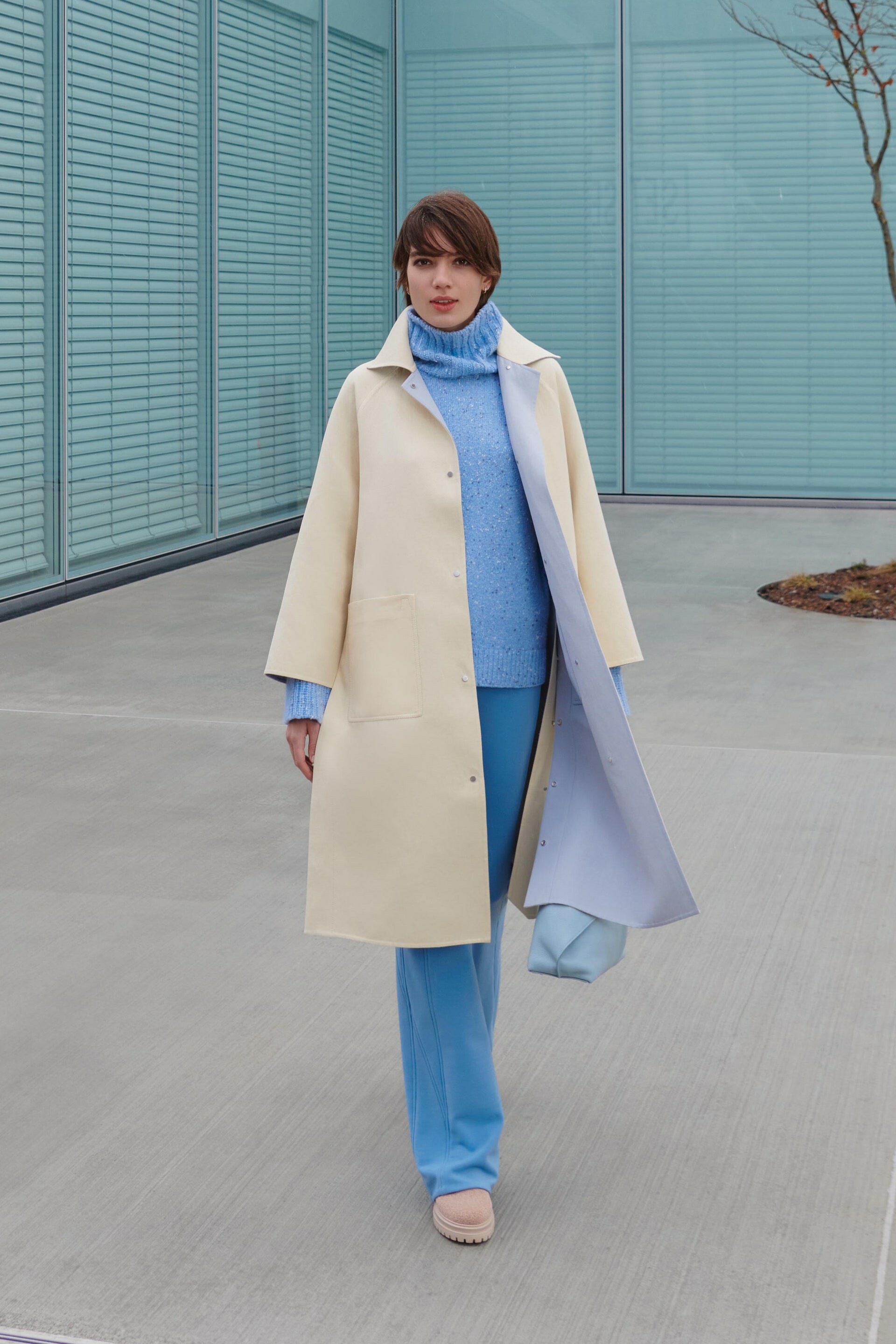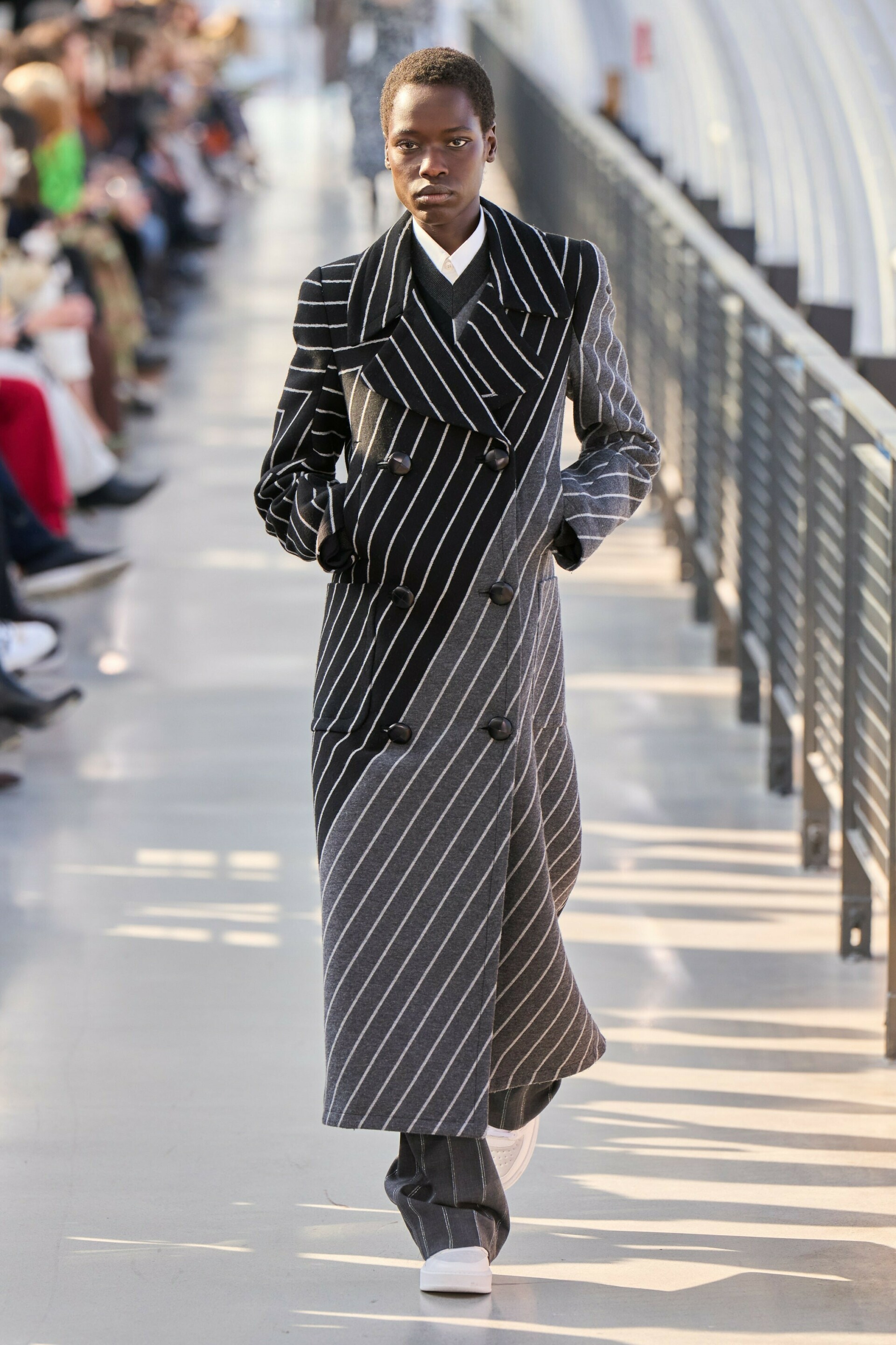Even the show’s setting fit the square trend as models stormed a light and open square-based building designed by Kriemler’s long time friend Sou Fujimoto.