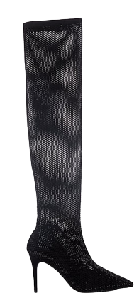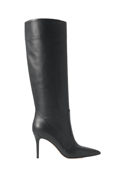The fashionista paired the look with an inventive twist on the black boot trend, as she donned a pair crafted by sheer material instead of traditional leather.