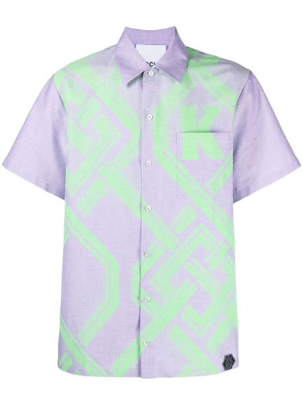 Adding some 1980s glamour to the streets of Paris, model Clara Berry graced the front row of Koche’s show in a geometric print shirt over a casual jogger/ jumper pairing in mint green. The look was comfortable but chic!