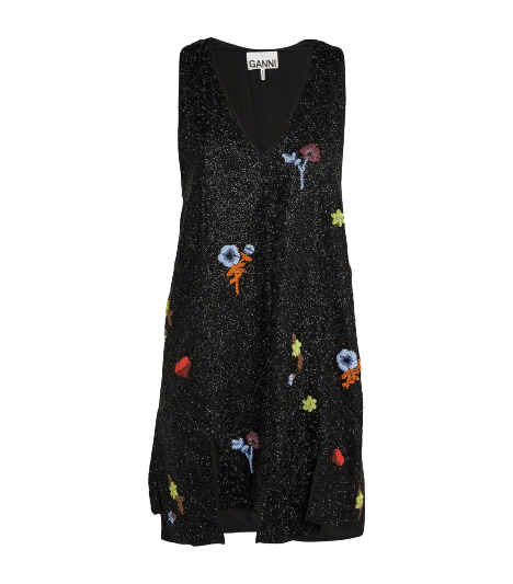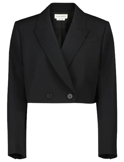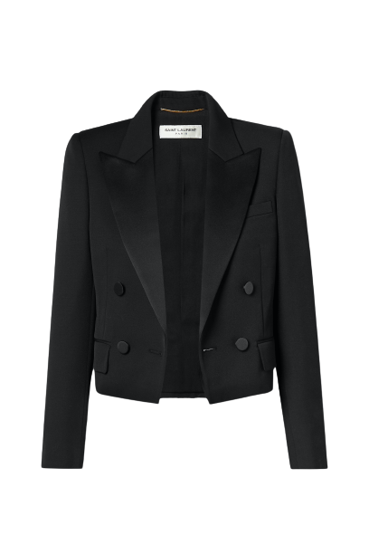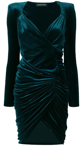 It isn’t just on the tennis court that Serena Williams is serving. Williams contrasted the all-black looks in Balmain’s crowd with a crushed velvet green gown. The dress was embellished with golden beads and the look was finished with a cropped blazer in a matching hue.