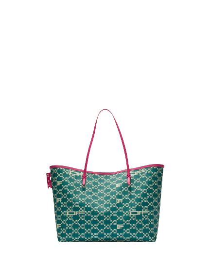 Why carry one purse when you could carry two? Was the question asked by model Hanna on the streets of Paris this week. Carrying the inventive reversible Victoria/Tomas purse on her shoulder, the model paired a green cut-out tee with studded ripped jeans and a structured leather blazer for a stylish green and black ensemble.