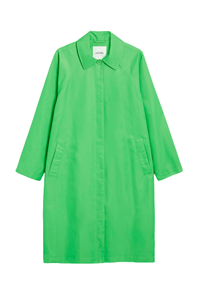 Adding a splash of colour to Paris, Jessica Wang covered her checkerboard print midi dress with the ultimate yellow raincoat. The coat- designed by Maison Margiela- was waist-length in style and lined with a soft suede material.