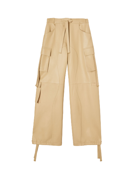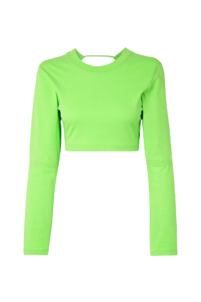 Tamara Kalinic brought a highlighter green moment to Off White’s show. The daring look featured a neon cropped tee and trenchcoat paired with cargo pants and peep-toe heels. The star perfectly complemented the vivid runway looks.