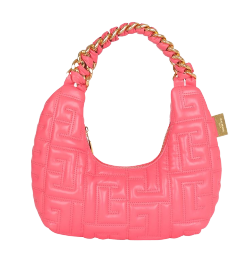 Dangerously fierce but with a splash of pink feminine flair- Aleali May struck the perfect balance between what makes a woman powerful with her Balmain show look. The star posed on a staircase wearing wet leather look trousers, a suede jacket and a triangular corset top contrasted by a bright pink Balmain purse.