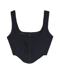 Sticking to the all-black memo of many Paris Fashion Week styles, Evangelista is accessorised with platform lace-up boots and a miniature purse in the sultry shade.