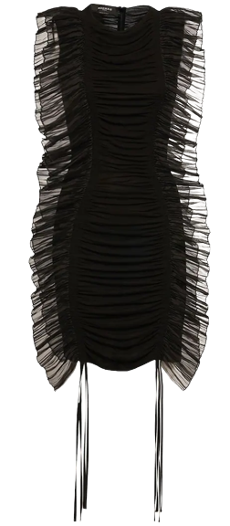 Bruna brought boots like never before to the Rochas Paris show. Reaching the star’s upper thighs, the boots imitated flames rising from the ground. Ensuring the iconic shoe stood out, the star dressed in a ruched, lace-trimmed black dress by the brand.