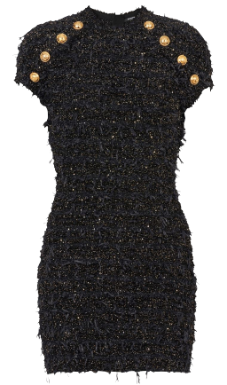 Storming the streets of Paris, Filipino actress Hearte Evangelista wore the little black dress of our dreams. The SS22 Balmain tweed dress was glittering and embellished with gold buttons, giving the star an air of Parisian elegance.