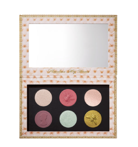 Staying on the opulent Georgian theme, the products are packaged in regal gold tubes and pearly plush palettes. The eyeshadows are even pressed with our favourite reminders of the show, with outlines of a bee and main character Daphne’s featuring in the palettes.