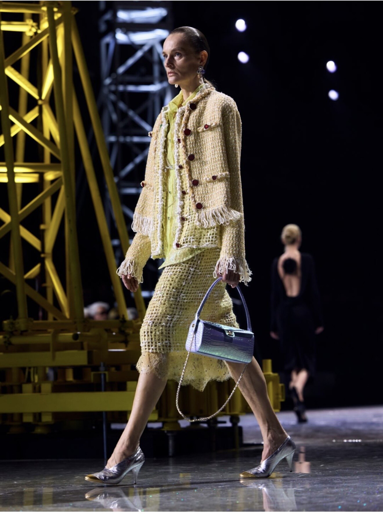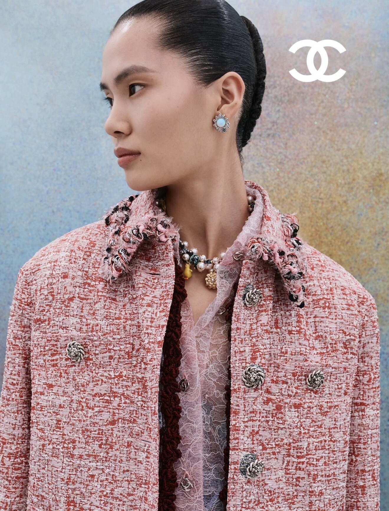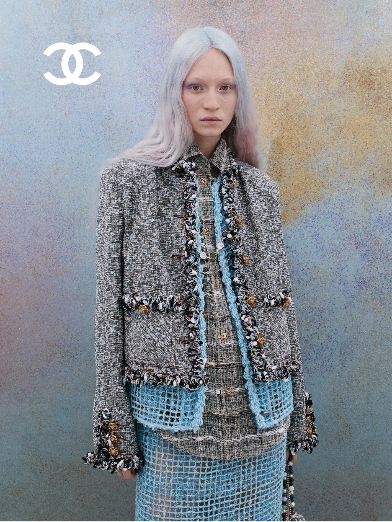 lapels, while chains — a long-standing Chanel motif — threaded through jackets and skirts.