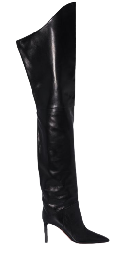 and tee co-ord this week. Accessorising with thigh-high latex boots and killer bangs, this look