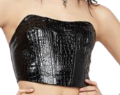 Paring the jeans with an equally outlandish tee, Kim donned a snake print strapless leather