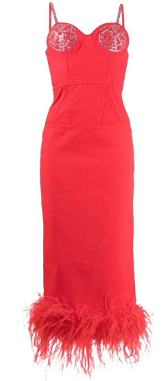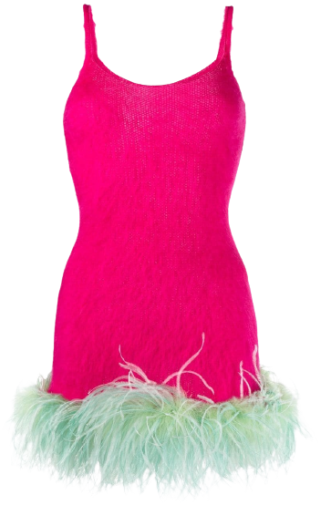 feather-trimmed Saint Laurent dress. Co-ordinating to perfection, the star matched the look