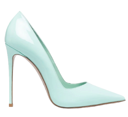 with The Attico heels in a mint shade that complemented her feather look elegantly. As