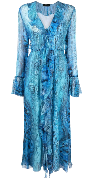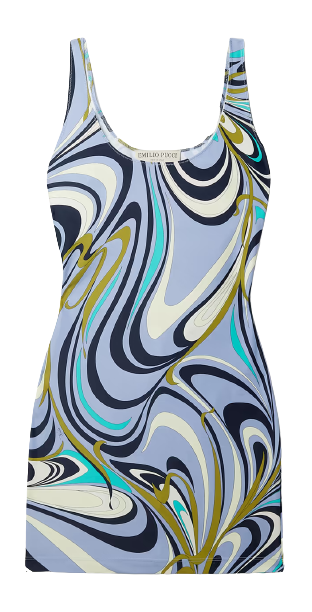 nostalgic look was plucked straight from the noughties. Pairing a blue wave print mini dress
