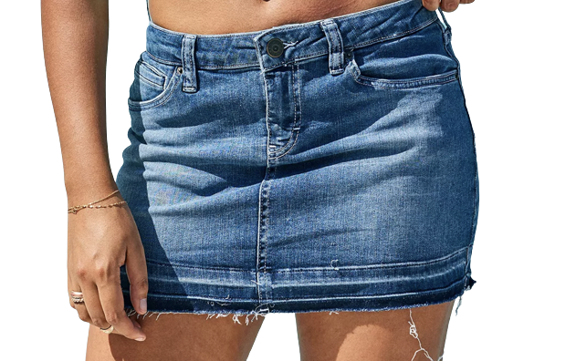 Fashion influencer and photographer, Natalie Winter, stepped out in Paris in this denim, cowboy look. Wearing a tube top from Diesel with a rhinestone belted low rise mini denim skirt. The western look is finished with a pair of knee high black textured cowboy boots.