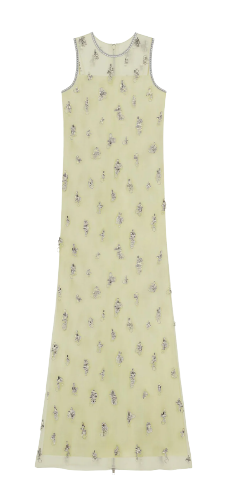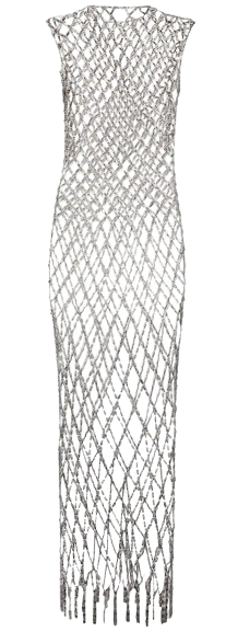 Another iconic jeweled look from 2021, this time with Zoë Kravitz wearing a dress courtesy of Saint Laurent. The slimline dress ran down Kravitz in diamond shaped patterns which revealed her body underneath. The dress struck a balance between luxurious and minimalist with the cut of the dress being quite simplistic and understated, serving as a nice contrast to the large amount of jewelry. Kravitz also wore a pair of earrings which flowed well with the dress and helped tie the outfit together.