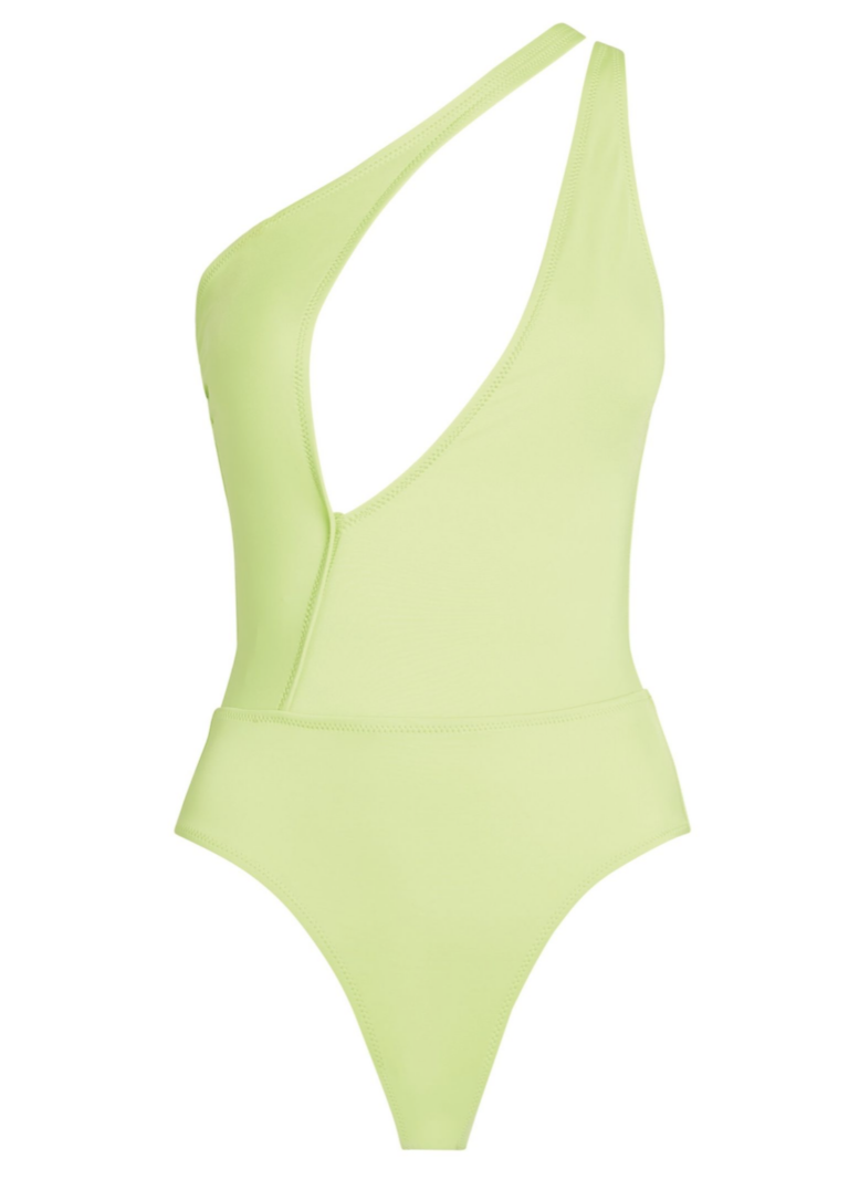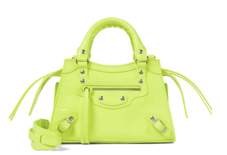Neon is not just for Summer – Megan Fox proves a touch of neon can stay in our Autumnal wardrobe. Her matching denim jacket and jeans with simple white detailing is a perfect option to add some vibrant neon colours. This neon risqué cut-out body suit and matching purse adds excitement to denim basics.