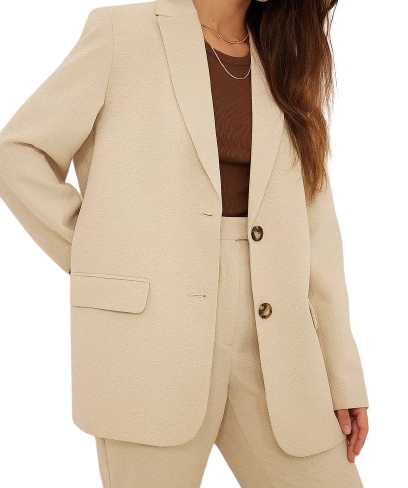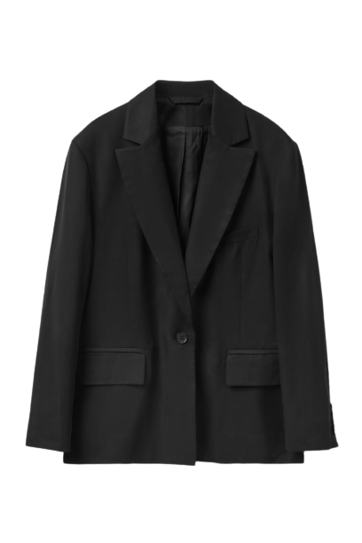 Singer Perrie Edwards shows that she’s not afraid to mix it up with this Paris Remade string waist oversized blazer dressed down with trainers and a Fendi chain bag – perfect for casual meetings and lunches.