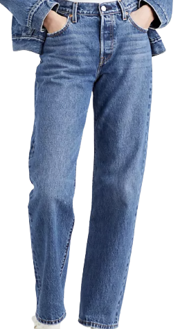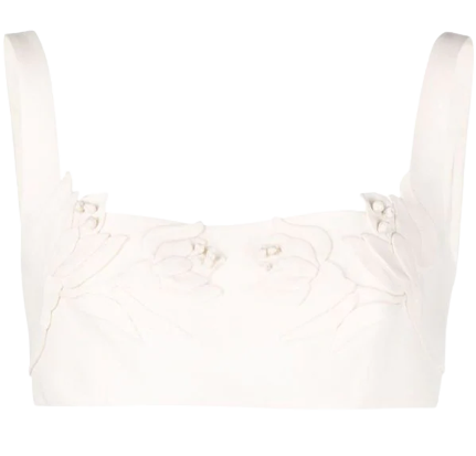 Lena masters casual looks with ease as we can see here with a white floral and embroidered crop top harmoniously paired with Levis 501-inspired high-waisted jeans, brightened up with delicate silver jewelry.