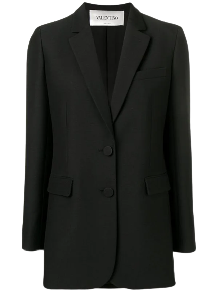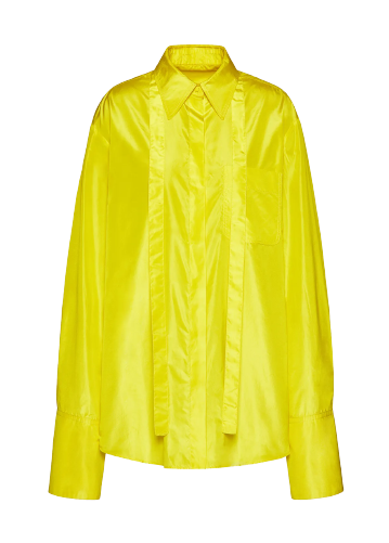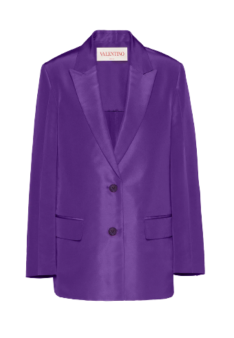 Daring to mix exuberant colours is Lena’s motto when it comes to her outfits. Here for Maison Valentino, she went for a tailored look with a bright yellow shirt topped with a long purple suit jacket accentuated with a marine green handbag from the fashion house. Something resolutely flashy reminiscent of 70’s chic.