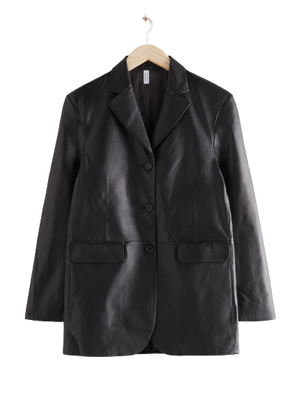 Double denim was no longer a no-go after seeing Kaia’s street look. With a pair of frayed blue jeans, black heeled boots, and a belted leather jacket, Kaia paired her denim jeans with a small denim clutch bag slung over her shoulder. A pair of thin rose-tinted glasses complimented the large golden hoops which accessorised the look.