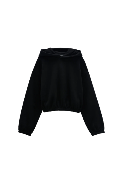 On the streets of NYC, Kaia strode in a refined urban look. A black boilersuit with white accents was layered over a black hoodie and paired with Doc Martens. A strong black liner pulled the look together.