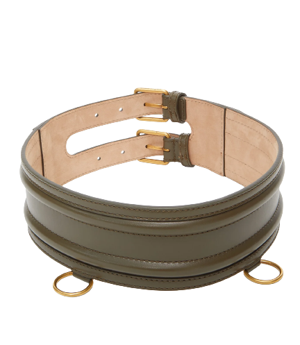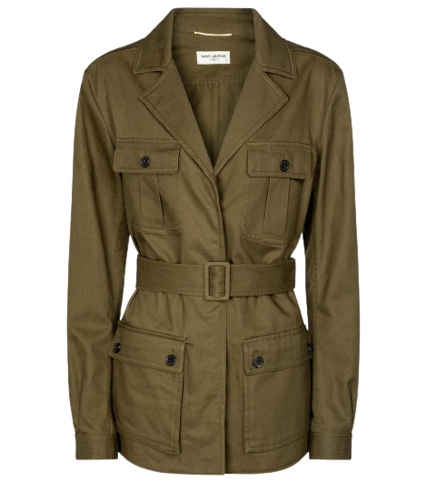 Kaia’s tailored military green outfit was another perfect off-duty outfit. In a matching green mini skirt and military-style jacket, belted at the waist, Kaia paired black patent knee-high boots with oversized shades. Kaia’s bag and jacket effortlessly matched with their subtle golden embellishments.