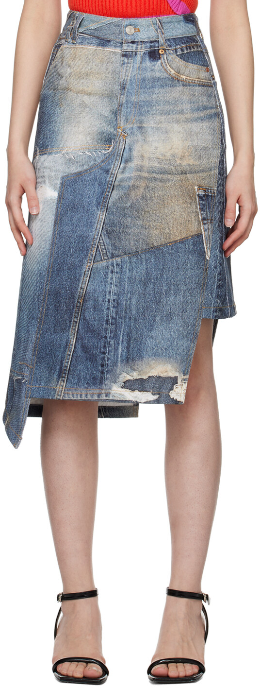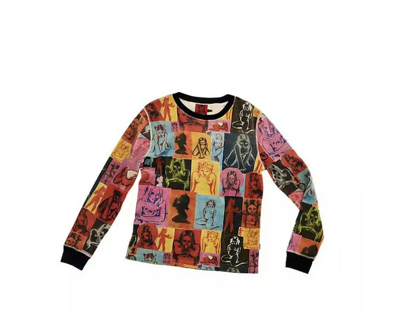 Posing for Marc Jacob’s heaven, Gabriette embodies the 90s grunge aesthetic of the brand. She wears the new collection’s patchwork-style long sleeve crewneck over a faded, reworked denim midi skirt and adds a bohemian element with the western disc belt.