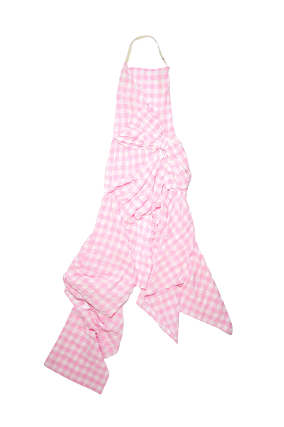 For a performance in Mexico as part of her tour, Rosalía wore this red gingham Acne Studios dress paired with leather boots and gloves. The high-low cape dress is dramatic and perfect to perform in, and the pattern reminds us of a summer picnic blanket. She incorporates an edgy biker aesthetic into the look with the black leather lace-up opera gloves and knee-high motor boots with knee pads, and finishes the look off with a classic red lip.