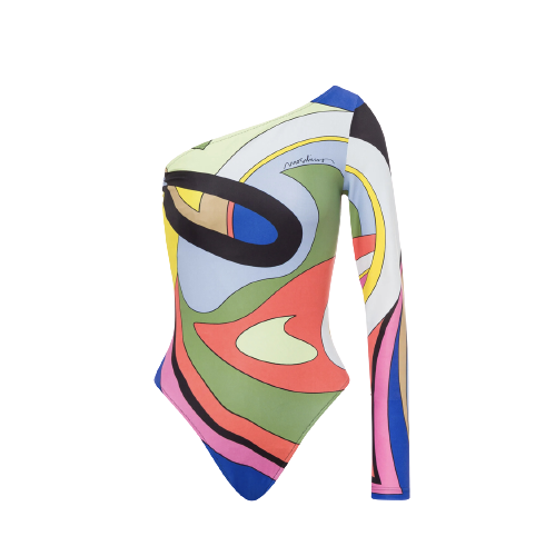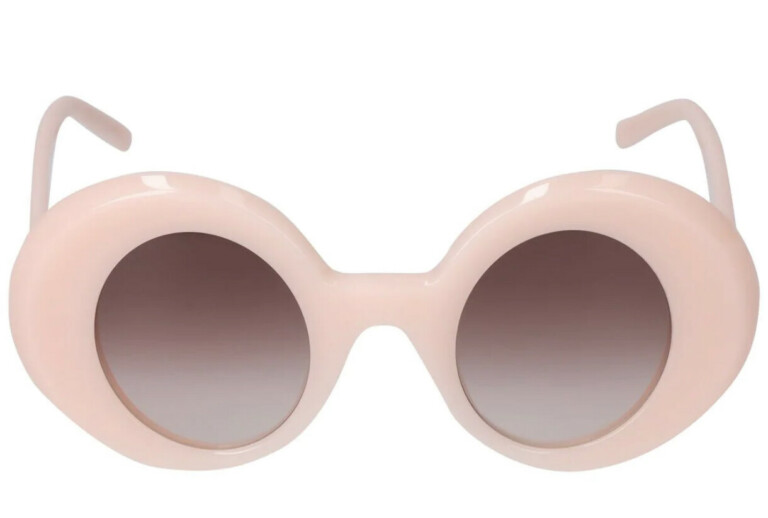 Lizzo embraces her colourful surroundings in the Bahamas with this bright, cut-out crossover bathing suit. She layers a salmon pink mesh cover up over it and styles it with large hoop earrings, rose-tinted Loewe sunglasses, and hippy bracelets. She goes for natural nails, embracing neutral brown and nude ombré acrylics.