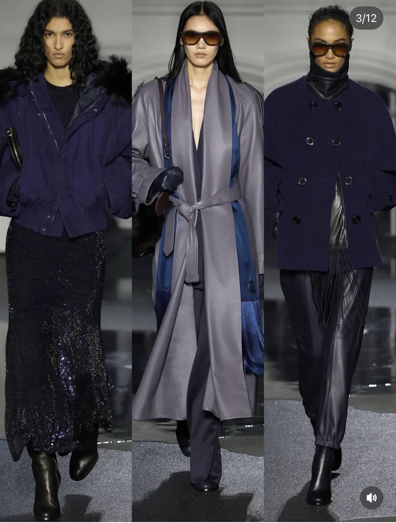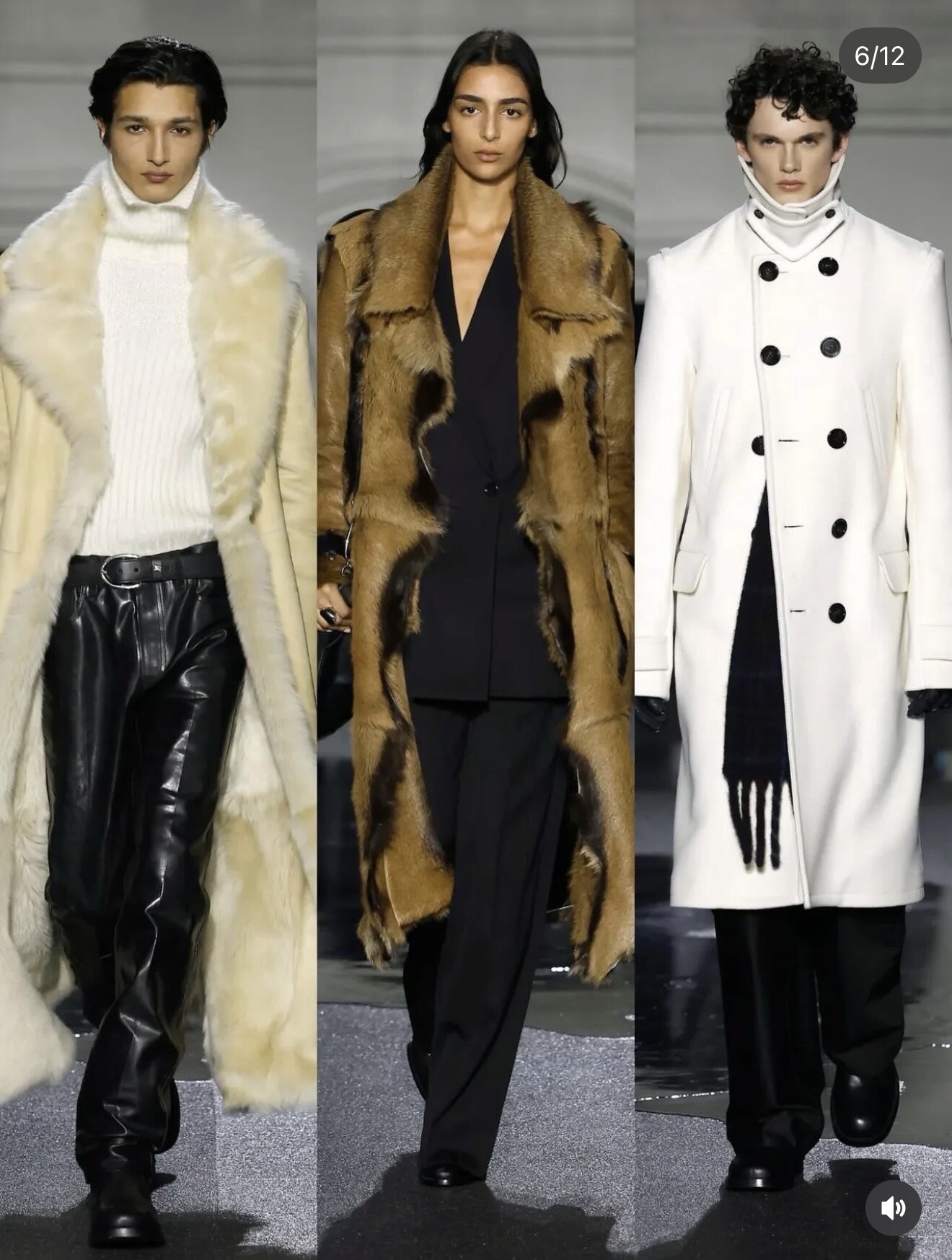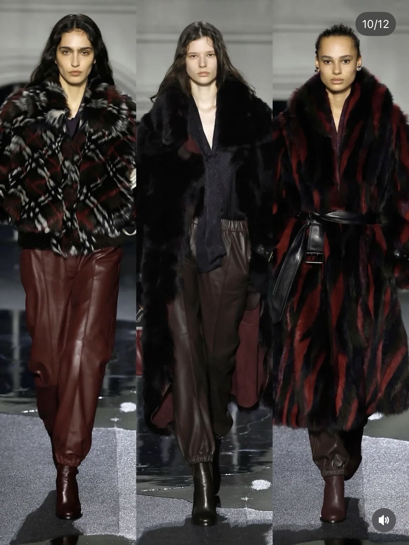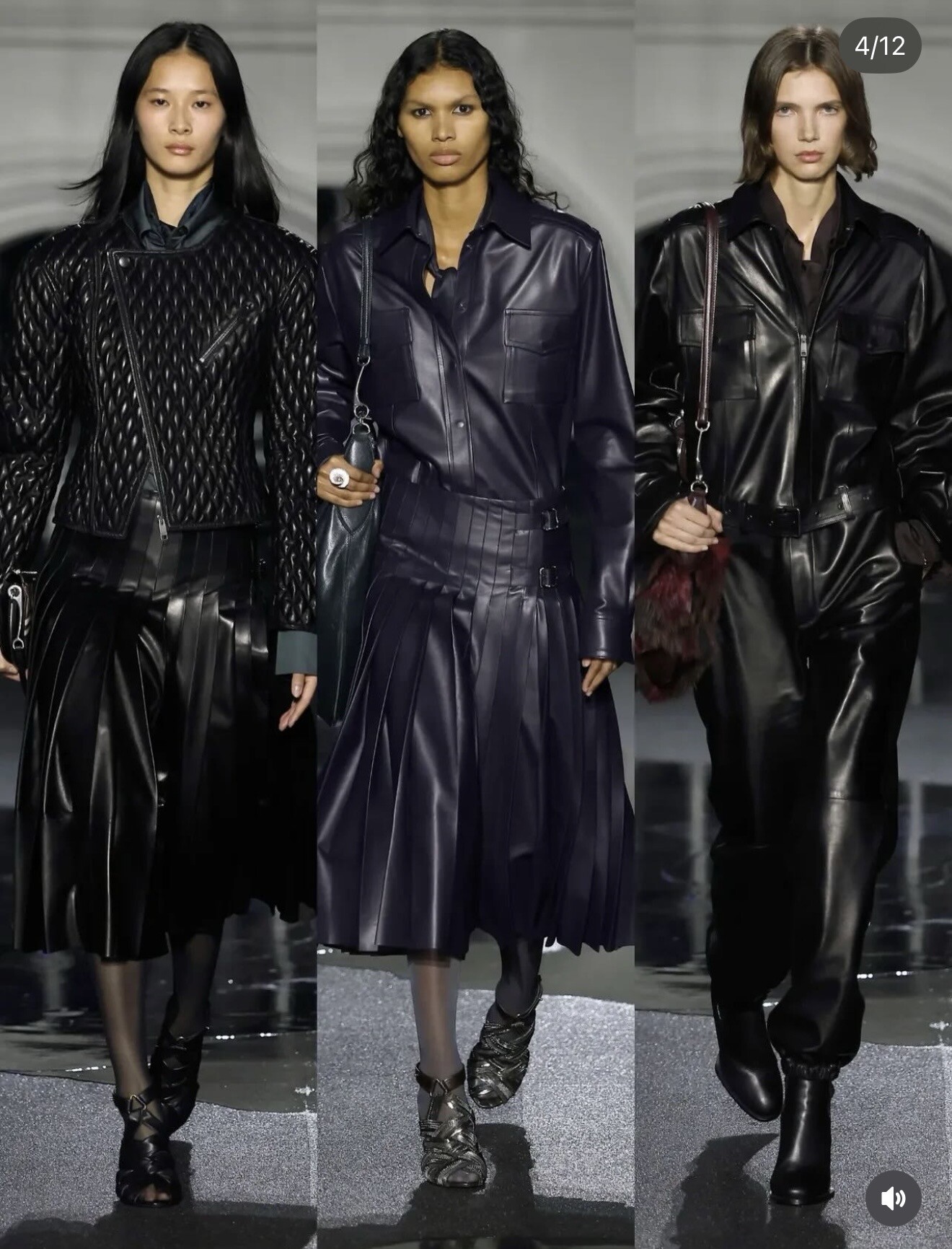This season shifted Burberry firmly into city territory. Oversized trench coats, textured shearling and deep-toned leather outerwear reflected London after dark — practical yet unmistakably polished.