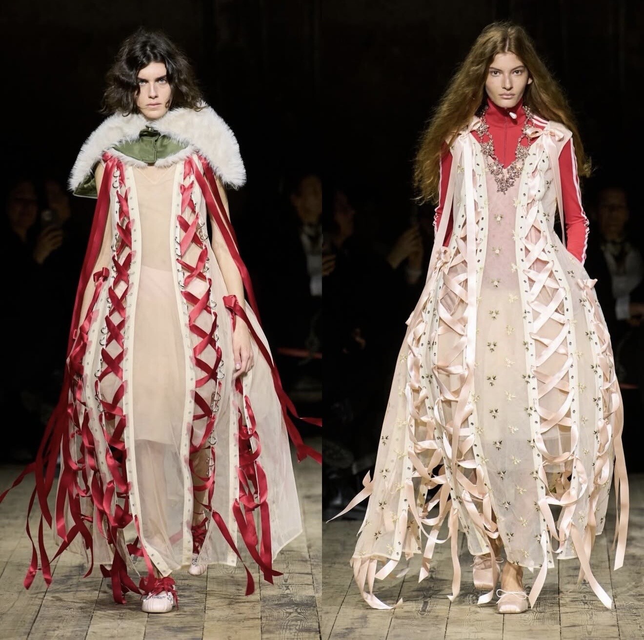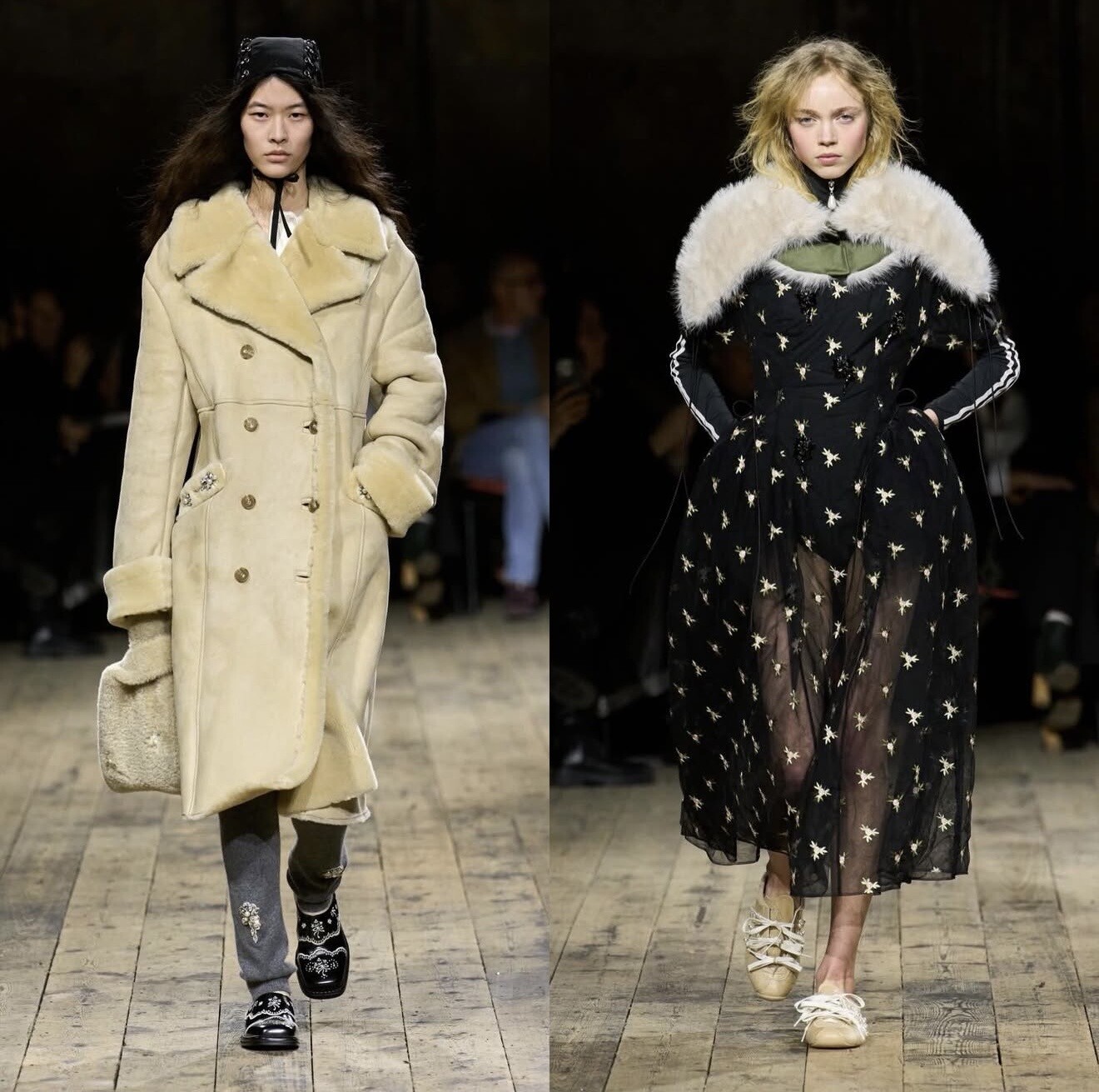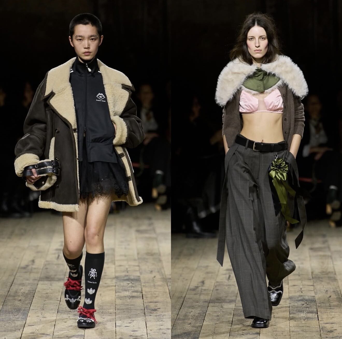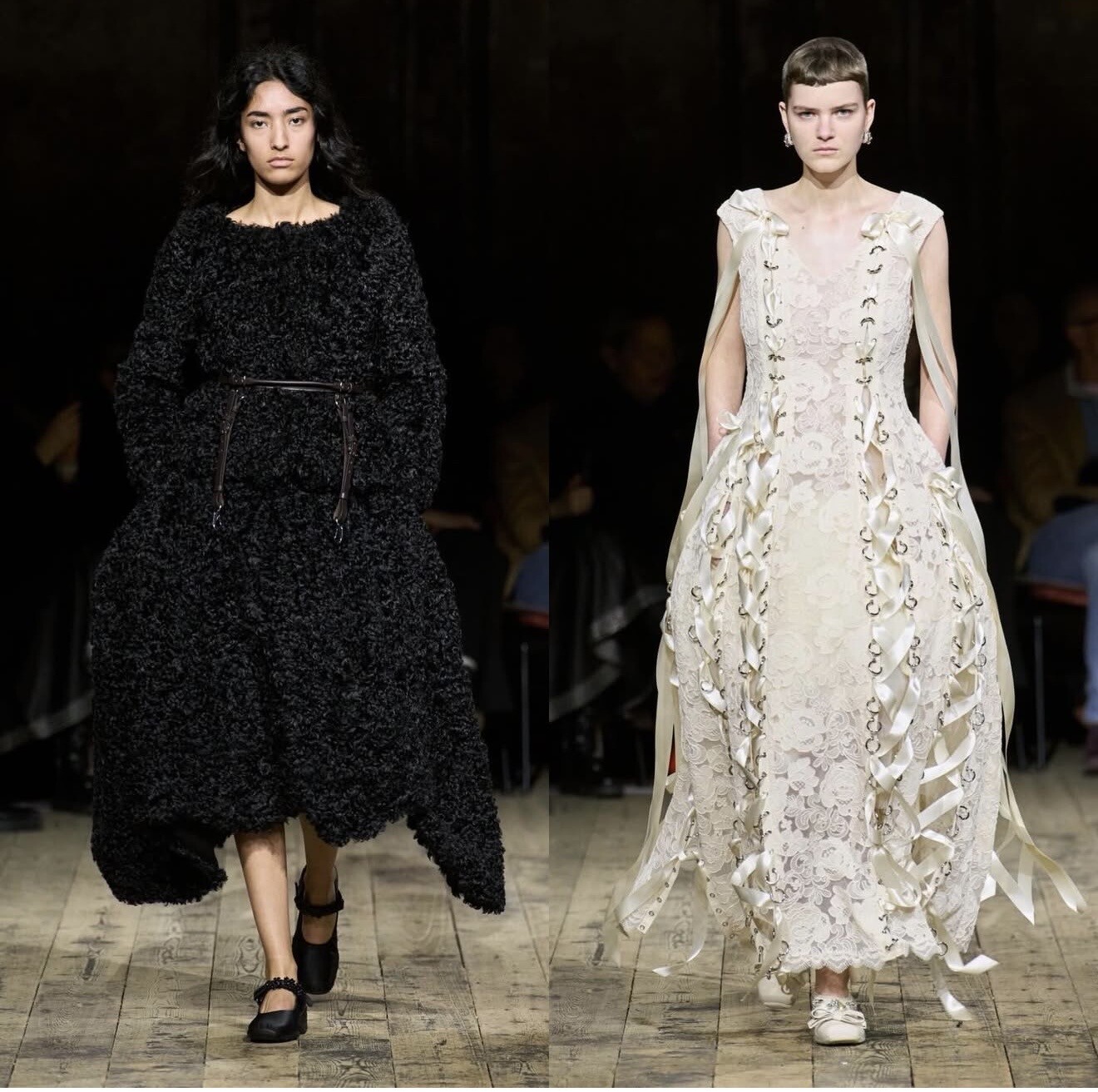 Simone Rocha presented one of the most emotionally resonant shows of the week. Her continued exploration of softness collided with athletic practicality, as delicate tulles and pearl embellishments met sportswear silhouettes.
